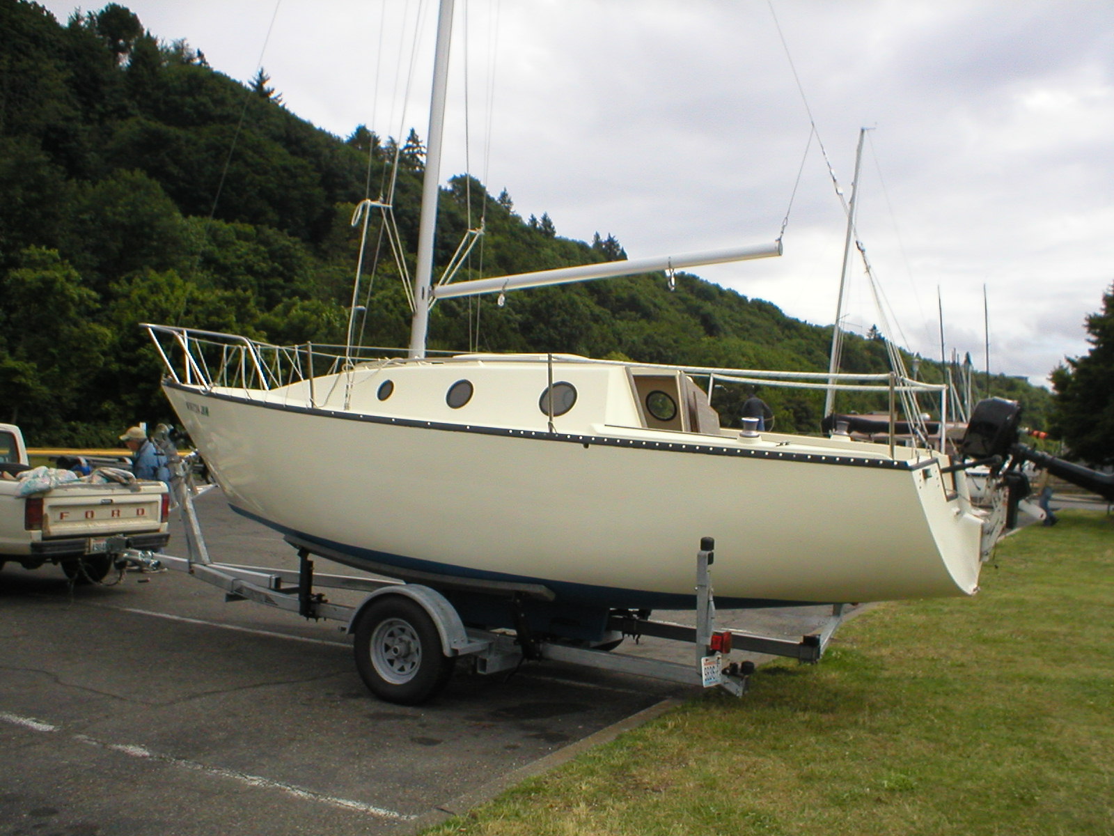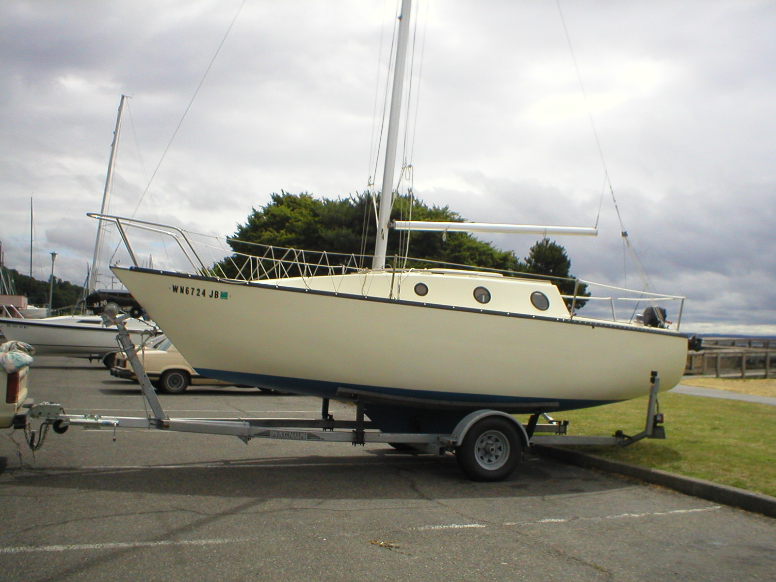 and suitable for single-handing. It has a 960 lb. lead semi-keel and